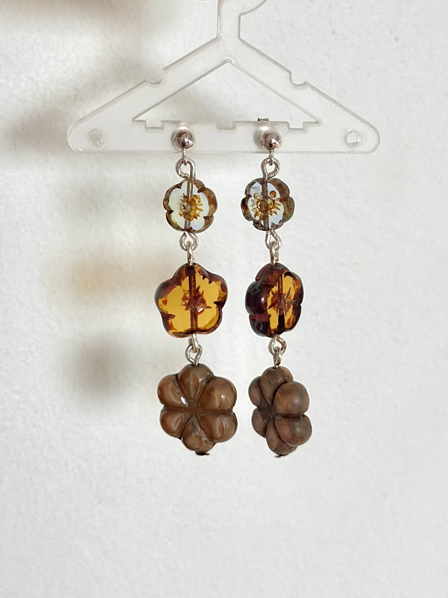 Consists of glass beads, Czech beads and 925 silver hooks.